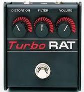 Crunchy and fuzzy and annoying -- but in a good way. I epitomized the Ratt / Motley Crue sound from about 1985. I, personally, didn't find it versatile enough, so it got paired (taking a page from Gary Holt's book...) with another distortion pedal, listed below, the TurboRat.