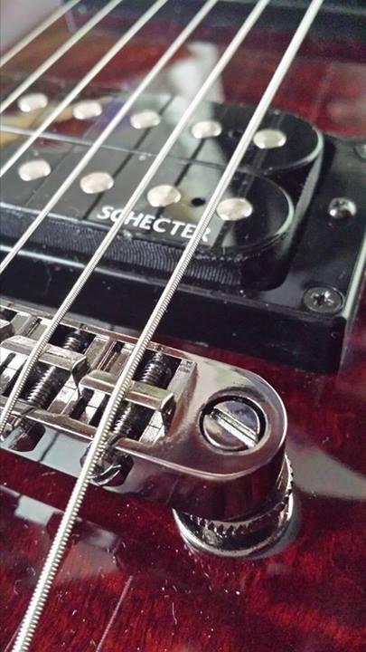 The bridge is horiffic. Specifically, the hardware is sharp and for playing any palm-muting at all, it cuts into the flesh of the palm causing a bloody mess after some good riffing. Worse? The sharp allen-screws also catch in the palm and unscrew themselves, thus throwing you out of tune.